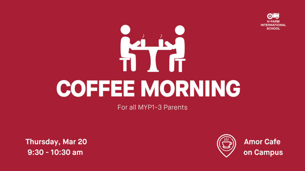 We warmly invite you to a coffee morning on Thursday, March 20th, from 9:30 to 10:30 in Amor, open to all M1-3 parents. This is a great opportunity to connect with other parents, chat informally with school leadership, and discuss any topics on your mind.