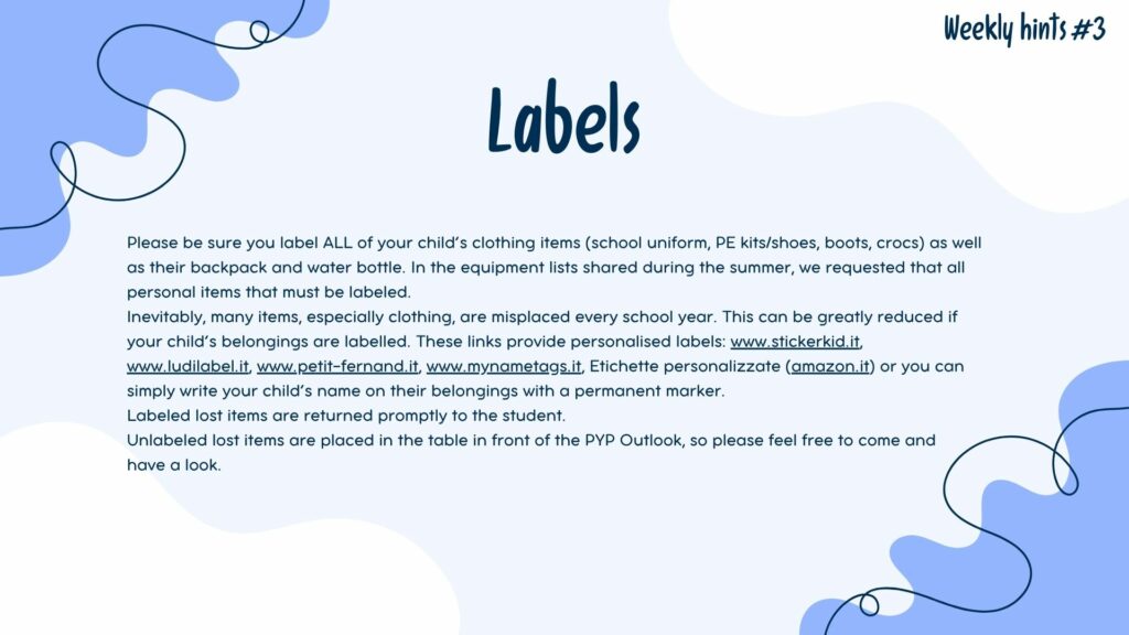 Good to Know! Suggerimenti settimanali #3 dal PYP Parent Handbook - Etichette