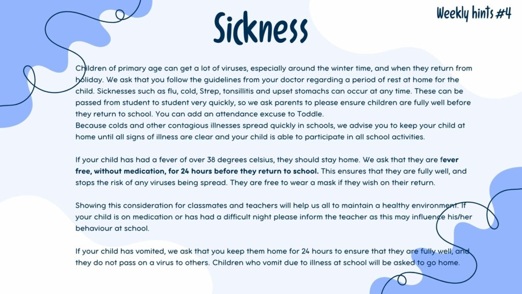 Good to Know! Suggerimenti settimanali #4 dal PYP Parent Handbook - Malattia 1920 1080 School Office PYP