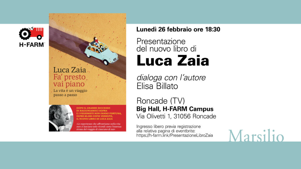Unitevi a noi per una serata unica dedicata alla presentazione del nuovo libro del Presidente della Regione Veneto Luca Zaia, "Fa' presto vai piano. La vita è un viaggio passo a passo".