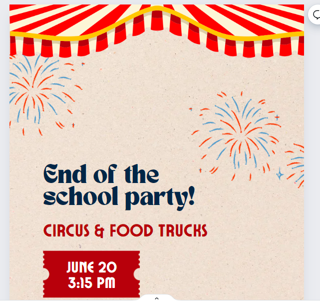 After school activities and school buses will run regularly for students who can’t be picked up by their parents to attend the party.