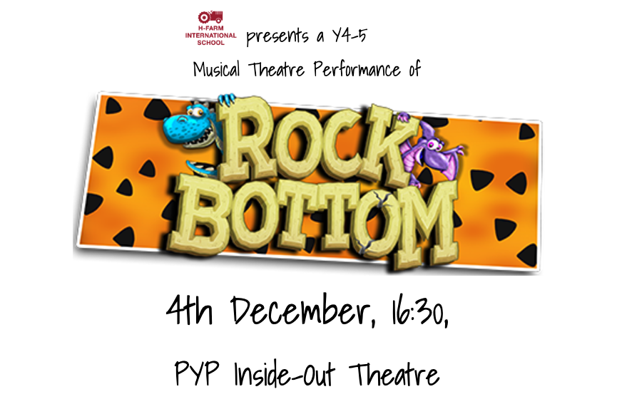 You are invited to the Y4–5 prehistoric production of “Rock Bottom!”, taking place on Thursday, December 4th at 4:30 pm in the new and improved PYP Inside-Out Theatre (PYP building).