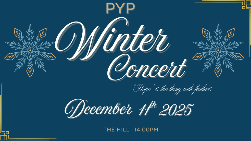 We are delighted to invite you to join us on Thursday, December 11th at 2:00 pm at The Hill for our PYP Winter Show!