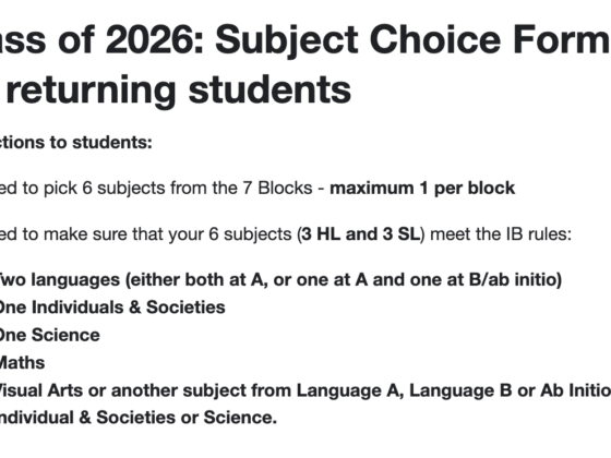 read moreDear MYP5 parents, if you haven’t already, please remember to complete the subject choice form. All the relevant…
